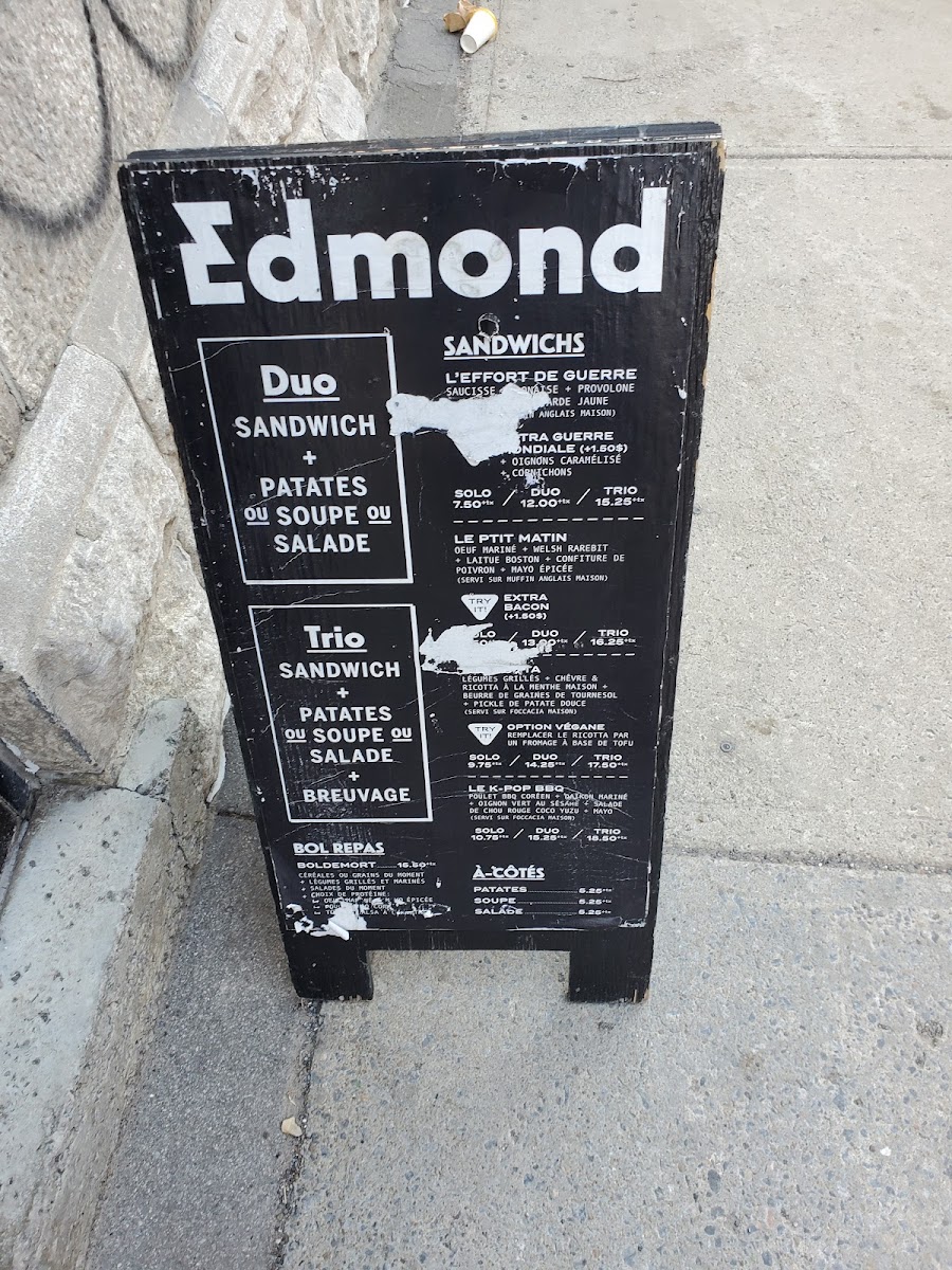 Welcome to Edmond Cafe Cantine, a hidden gem nestled in the heart of Montreal at 105 Rachel St W. This cozy spot is the perfect haven for those looking to work or relax while enjoying a delicious meal. The menu is a delightful blend of comforting and innovative dishes, highlighted by their exceptional focaccia, which customers rave about for its irresistible flavor and freshness.